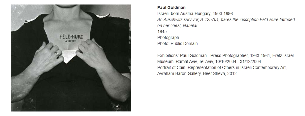 Sobre el tatuaje, un comentario que dudo que sea novedoso. Feld es campo, pero carece de sentido en en el contexto de un KZ, ya que “puta del campo” sería “Lagerhure”. Feldhure tendría sentido como “puta de campaña”, es decir, la que sirve a las tropas desplegadas en una misión. No pongo en duda la originalidad de la foto, pero Feld no es un término que un nativo asociase a campo (de concentración).