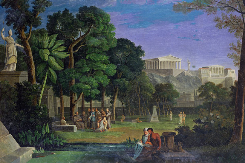 Epicuro, el hombre, fue un ser fascinante del que sabemos poco. Por lo que comenta Diógenes Laercio, fuente principal sobre su vida, debía de ser una persona con mucho carisma, además de inteligente. Nacido en la isla de Samos, fundó en Atenas una escuela conocida como el Jardín: un espacio donde se reunía con sus amigos para reflexionar sobre la naturaleza, la vida y la felicidad. Se trataba de una parcela modesta que compró a las afueras, más una huerta que un jardín. Allí se juntaban hombres y mujeres; libres y esclavos, todos como iguales, para compartir ideas, risas y momentos de conexión. Su jardín no era solo un lugar de ocio y de trabajo manual, sino también una comunidad de aprendizaje donde se discutían ideas filosóficas, científicas y éticas. Algo así como lo que debería ser un departamento universitario.
