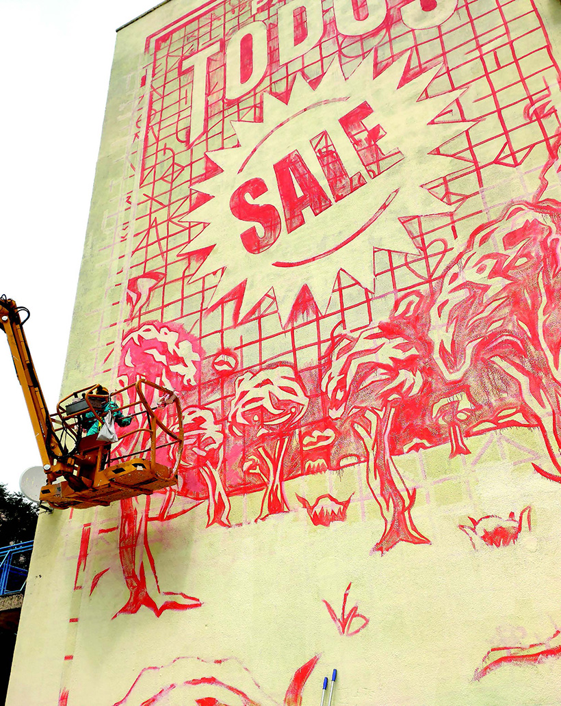 En este tipo de intervenciones con estética de cartel, el mural es la obra original. Normalmente los carteles están pensados para reproducirse y situarse donde sea, pero las reproducciones de nuestros murales en serigrafía artesanal tienen un original en un lugar concreto. Como somos unos amantes de la obra gráfica, después de realizar un mural producimos ediciones limitadas con el diseño adaptado y traducido al sistema de la serigrafía. Es una manera de propagar el mensaje y que la gente se lo haga suyo en su entorno.