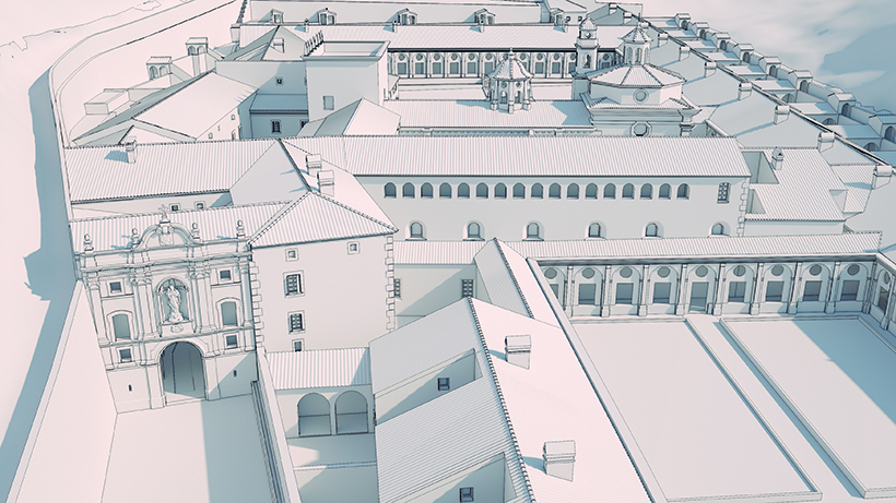 La reconstrucción virtual de la Cartuja de Escaladei, en el municipio tarragonés de La Morera de Montsant, sin texturas.