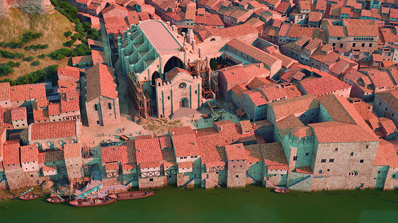 Concretamente, he realizado la reconstrucción completa del complejo de la Cartuja de Escaladei (Tarragona) y, en este momento, estoy trabajando en la del castillo de Miravet (Tarragona). Trabajamos en contacto directo con los arquitectos que llevan décadas estudiando estos complejos, tanto para su conocimiento como para su restauración. Partimos de los datos más actualizados y de las hipótesis desarrolladas a lo largo del tiempo sobre su diseño original, gracias a las labores de conservación, excavaciones arqueológicas y estudios de arquitectura. El objetivo es consensuar una reconstrucción lo más fidedigna posible del estado que pudieron tener en un momento determinado.