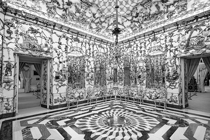 Al cruzar el umbral, me espera un despliegue que multiplica la solemnidad exterior. La Sala China, también llamada Gabinete de Porcelana, es un estallido de ornamentación minuciosa: las paredes parecen respirar con sus relieves delicados y la luz se dispersa como si hubiera caído en un estanque de cristal. Más adelante, la Sala de los Espejos me fragmenta en mil reflejos; el espacio se expande ad infinitum, como si la arquitectura misma quisiera recordarme que en la corte nadie es uno, todos son máscaras y cada gesto se multiplica hasta perder su verdad original. La capilla real, obra culminada por Sabatini en 1778, me devuelve al recogimiento: planta de cruz griega, columnas dóricas, una cúpula pintada por Bayeu que abre un cielo de pigmentos. Cien años después, en 1878, Alfonso XII y su prometida María de las Mercedes hicieron historia al celebrar la primera llamada telefónica de la realeza española… desde dos habitaciones distintas del mismo palacio. Una pequeña revolución en medio del lujo barroco.